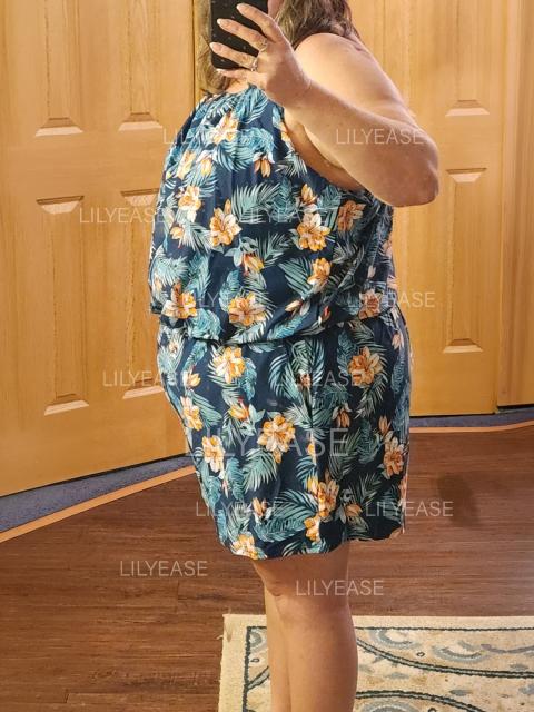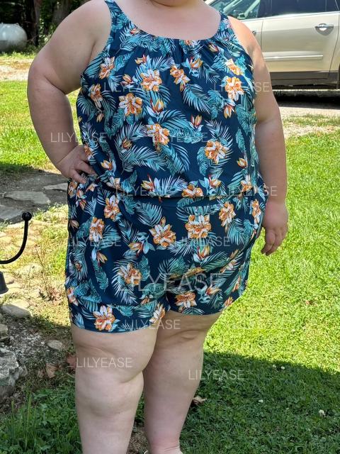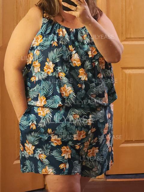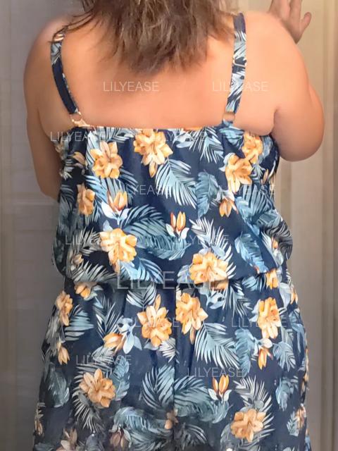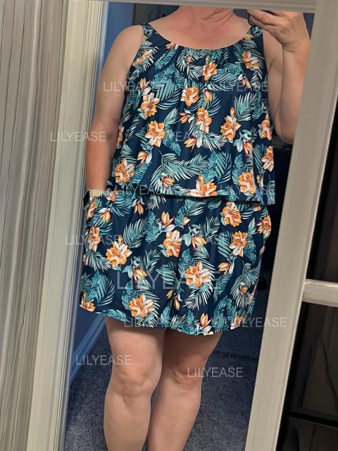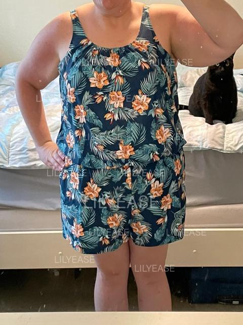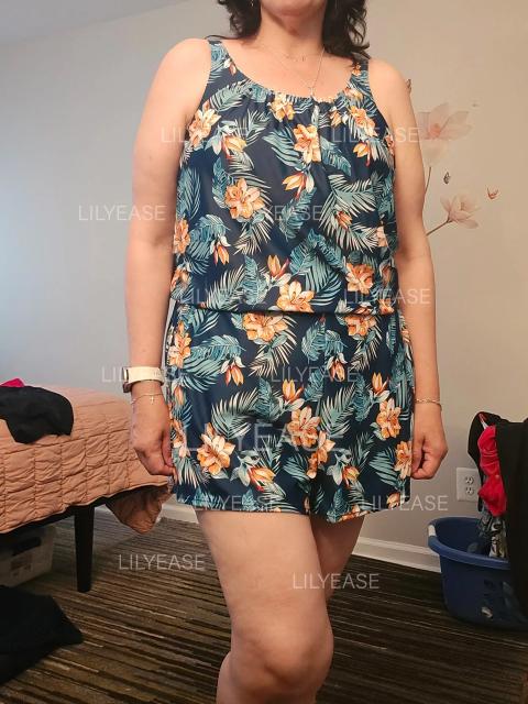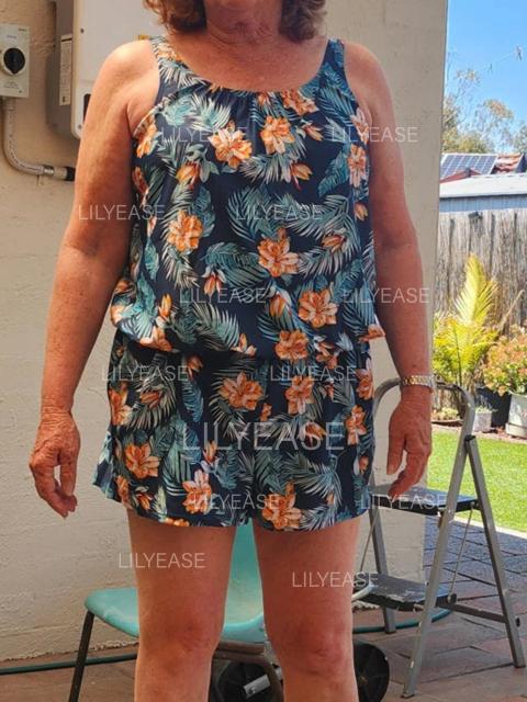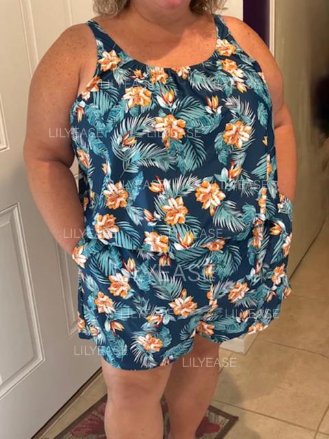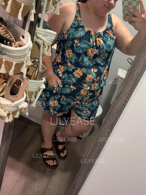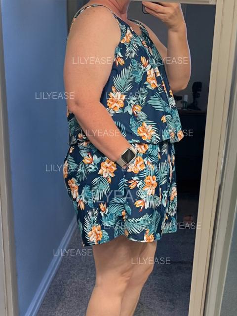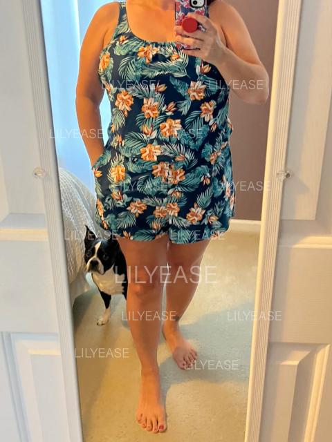 Final Sale LILYEASE ® Baroque Pattern Print Vintage Wide Straps Pocket Curvy Swimsuit One Piece Swim Romper