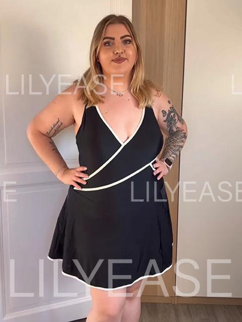 Flash Sale LILYEASE ® Black And White Splicing V Neck Fashionable One Piece Swimdress
