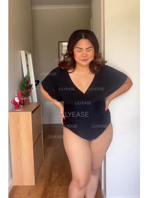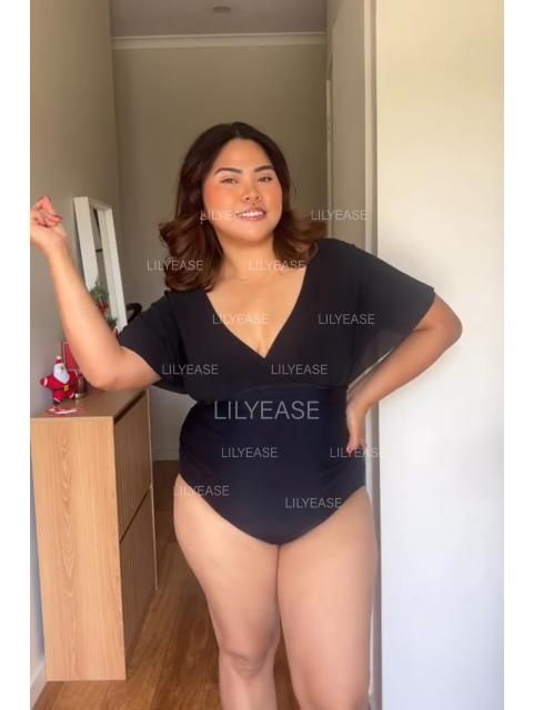 Final Sale LILYEASE ® Black V Neck Mesh Flutter Sleeves One Piece Swimsuit