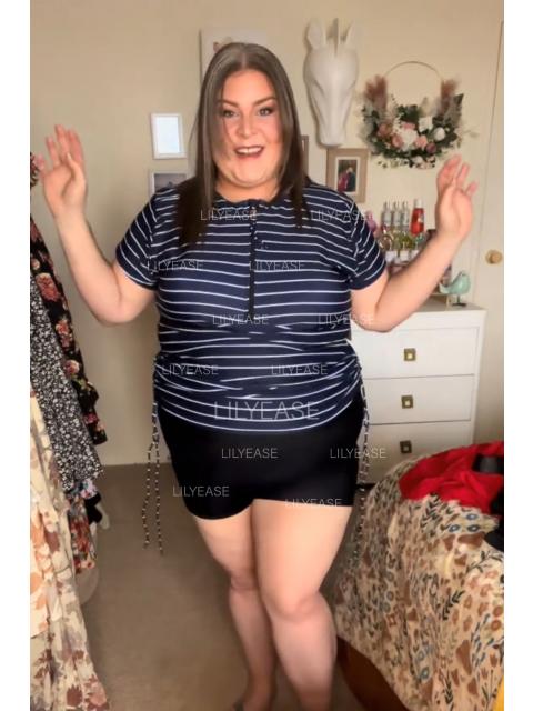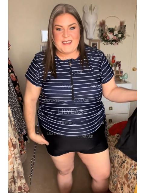 I absolutely love this tankini top! The zip front design makes it super easy to put on, and the short sleeves offer great sun protection without feeling too hot. The stripes are so flattering, and the fit is perfect for a plus-size body—comfortable and supportive in all the right places. I feel stylish and confident every time I wear it. Highly recommend for anyone looking for a cute and functional swim top