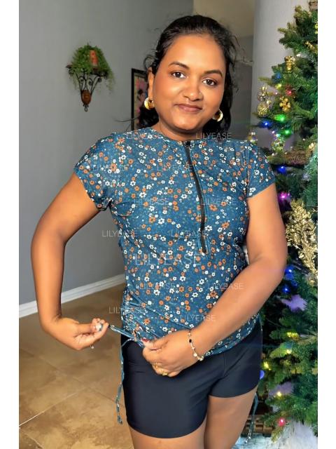 I love this floral top! The color is so fresh and vibrant, and the zip front makes it easy to wear. It’s great for women who like a bit more coverage but still want to look stylish.