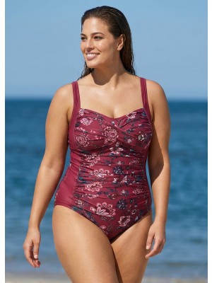 Final Sale LILYEASE ® Red Floral Print Pleated Fashion One Piece Swimsuit