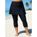 Black Flared Plus Size Modest Swimsuit Skort with Capri Leggings