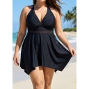 Black Plus Size V Neck Lace Mesh One Piece Swimdress