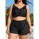 Plus Size Black With Frill Details Modest Elegant Bikini Swimsuit Top