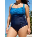 Blue Panelled Twist Front Modest Plus Size One Piece Swimsuit