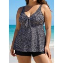 Plus Size Black Polka Dot Print Modest Swimsuits Tankini Top