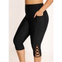 Plus Size Black High Waisted Tummy Control Side Pocket Swimsuit Bottom Swim Capri Pants