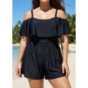 Plus Size Black Off The Shoulder Ruffles 1 Piece Bathing Suits Romper One Piece Swimsuit