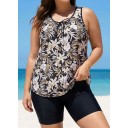 Black Floral Loose Fit Plus Size Women Tankini Top