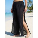 Plus Size Black Side Slits Tassel Swimsuit Cover Up Pants