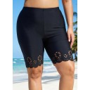 Curvy Women's Black Hollow Sport Simple Swim Short