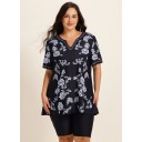 Black Floral V Neck Loose Short Plus Size Swimsuit Tankini Top