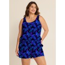 Purple Leaf Black Swimming Costume Scoop Neck Wide Straps and Pocket One Piece Swim Romper