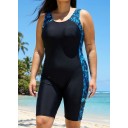 Black Cyan Gradient Pattern Tummy Control Plus Size Swimsuit One Piece Swim Romper