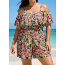 Plus Size Black Floral Flattering Off Shoulder Ruffled Swimsuit One Piece Swimdress