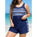 Navy Stripe Contrast Scoop Neck Flattering Curvy Swimsuit Two Piece Tankini Set
