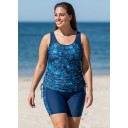 Navy Shell Pattern Scoop Neck Sleeveless Vintage Curvy Women's Swimsuit Tankini Set