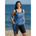 Curvy Blue Tropical Leaf Scoop Neck Sleeveless Vintage Women's Swimsuit Tankini Set