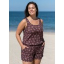 Plus Size Brown Floral Dot Scoop Neck Wide Straps Pocket Swimsuit One Piece Swim Romper
