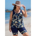 Curvy Navy Floral Scoop Neck Sleeveless Flattering Padded Curvy Swimsuit Tankini Set