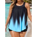 Crystal Blue Ombre Print Scoop Neck Longer Length Tankini Top