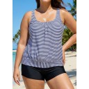 Plus Size Scoop Neck Striped Loose Modest Tankini Top