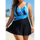 Blue Trendy Ombre V-Neck Flattering Swimdress Top
