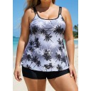 Plus Size Black And White Plants Print Double Straps Modest Tankini Top
