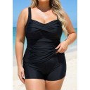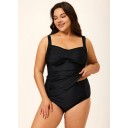 Stylish Black Twisted Front Ruched Tummy Control Tankini Top