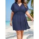 Purplish Blue V Neck Semi-Sheer Split Boho Style Cover Up