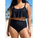 Black Scoop Neck Ruffles High Waist Bikini Top