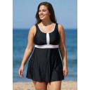 Black And White Color Block Round Neck Casual One Piece Swimdress