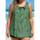 Plus Size Leaf Pattern Elegant Tankini Top with Wide Straps