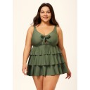 Green Knotted Front Ruffle Tiered Elegant Tankini Top