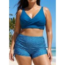 Deep Blue Twisted Front Fashion Plus Size Bikini Top