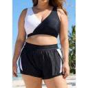 Black And White V Neck Patchwork Colorblocked Bikini Top