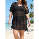 Black V Neck Cut Out Drawstring Swim Cover Up