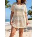 Beige V Neck Cut Out Drawstring Swim Cover Up