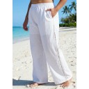 White Fashion Cutout Plus Size Modest Swimsuit Loose Cover Up Pants