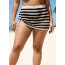 Black And White Striped Printed Drawstring Cover Up Skirt